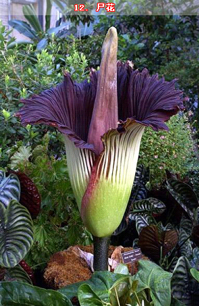 尸花學(xué)名為“Amorphophallus titanum”,有時(shí)也被稱為“泰坦魔芋花”。尸花是世界上體型最大的花,也是氣味最臭的花,原產(chǎn)于印度尼西亞蘇門答臘島的熱帶雨林中。它們會(huì)釋放出一種腐爛的尸體的味道,這也是“尸花”名稱的來源。它們散發(fā)臭味也是為了吸引昆蟲前來傳粉。這種花的葉結(jié)構(gòu)高度最高可達(dá)20英尺(約合6.1米),寬度最高可達(dá)16英尺(約合4.9米)。