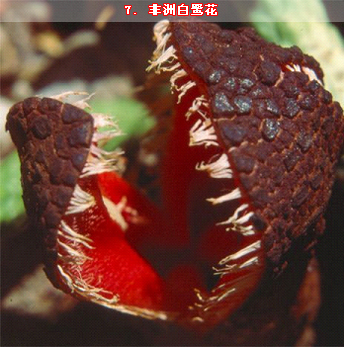 非洲白鷺花學(xué)名為“Hydnora africana”。這種植物是非洲南部的一種寄生植物,通常寄生于其他物種的根部。它們的花在地下生長(zhǎng),也可以長(zhǎng)到地面之上。圖中長(zhǎng)出地面之上的花朵好象是一條盲眼海蛇,正向外面的世界張開大嘴。非洲白鷺花最奇特之處不僅僅在于外形,還在于它的氣味,這種氣味就好似糞便的臭味,非常難聞。它們就是利用臭味吸引諸如腐尸甲蟲等花粉傳播者來幫助它們傳粉。